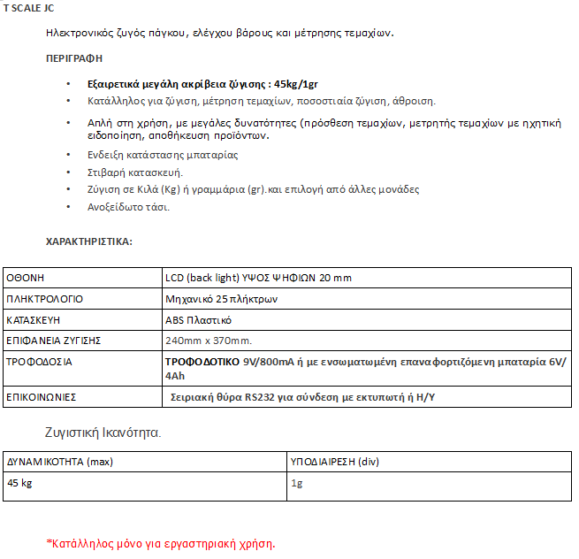 Ζυγοί ελέγχου βάρους & μέτρησης τεμαχίων