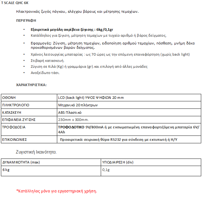 TSCALE QHC ΖΥΓΟΣ ΜΕΤΡΗΣΗΣ ΤΕΜΑΧΙΩΝ